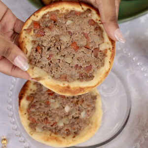 - Esfiha abertaSabores: Disponível também a opção coquetel com 8 unidades